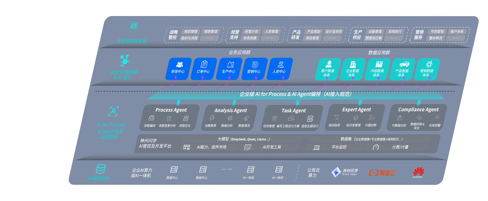 胜天国际问学智车解决方案是一套基于AI技术的汽车行业智能化系统,,覆盖从底层算力到顶层AI应用的全栈方案。。方案由算力层、、模型层和应用层组成:算力层,,方案支持多种一体机配置,,,具备云端灵活部署、、多云适配以及动态优化计算资源的能力;模型层,,,,胜天国际问学平台版提供了企业级AI应用一站式构建与管理平台,,,,支持基于后训练强化技术的汽车企业专属模型的训练、、、评测和运营;应用层,,胜天国际问学DeepSeek版提供包括超级员工、、、、智能招采、、、、智能营销、、智能客服、、AI for BI等一系列解决方案,,可助力汽车行业实现数字化转型,,,,让管理更智能、、、、响应更敏捷。。
