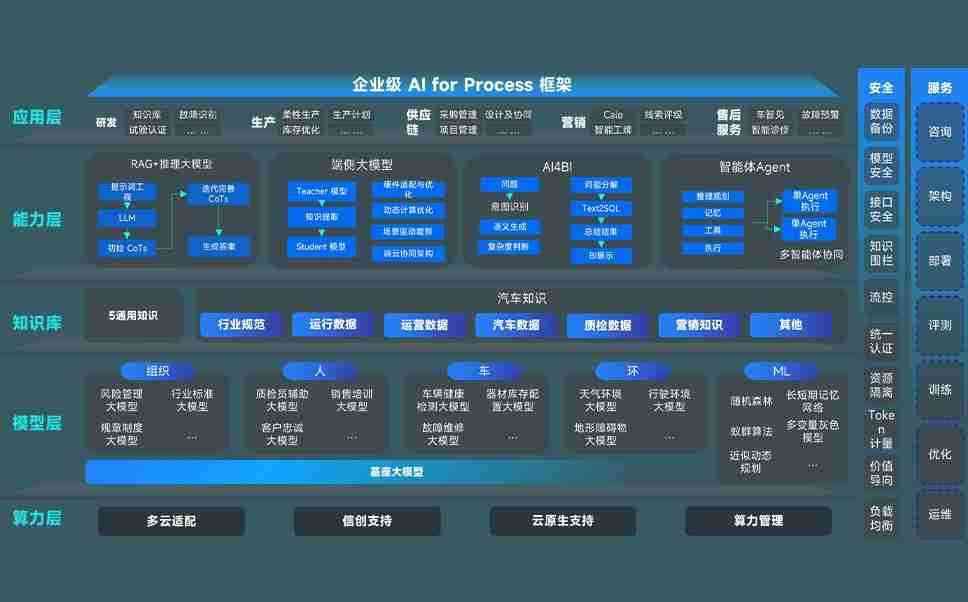 端到端的一站式AI工作空间深度融合了从企业战略规划到日常经营的全流程业务板块,,,定向解决车企内部领域多、、部门多、、、链条长、、、、场景碎片化等难题,,,,支持车企快速构建以AI为核心的生产力写作体系,,,实现任务执行与AI能力的无缝集成与交互